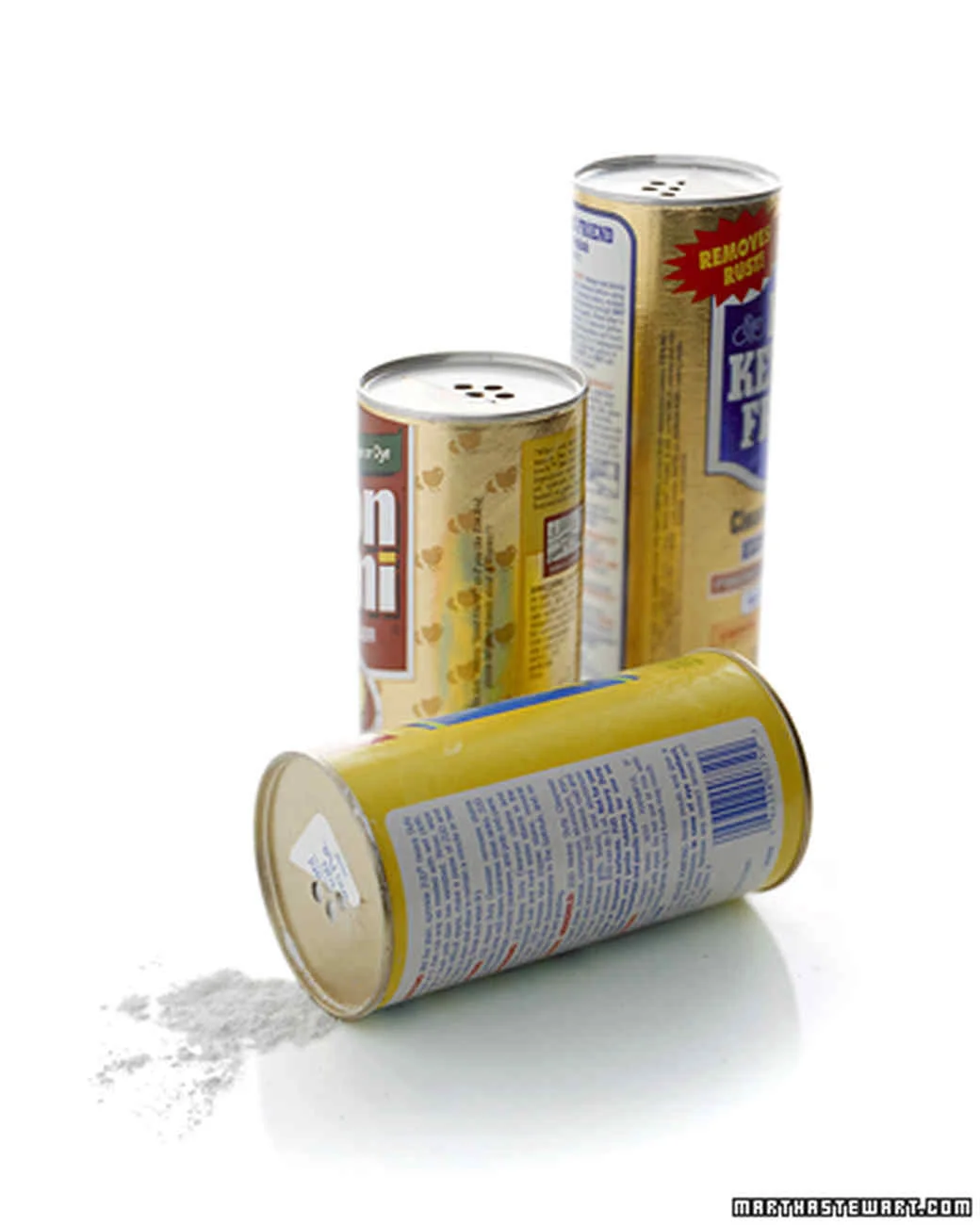 Next time you peel the seal from a canister of cleaning powder, take it off only halfway. Keeping some of the holes covered gives you better control of the flow, so it won't come pouring out.